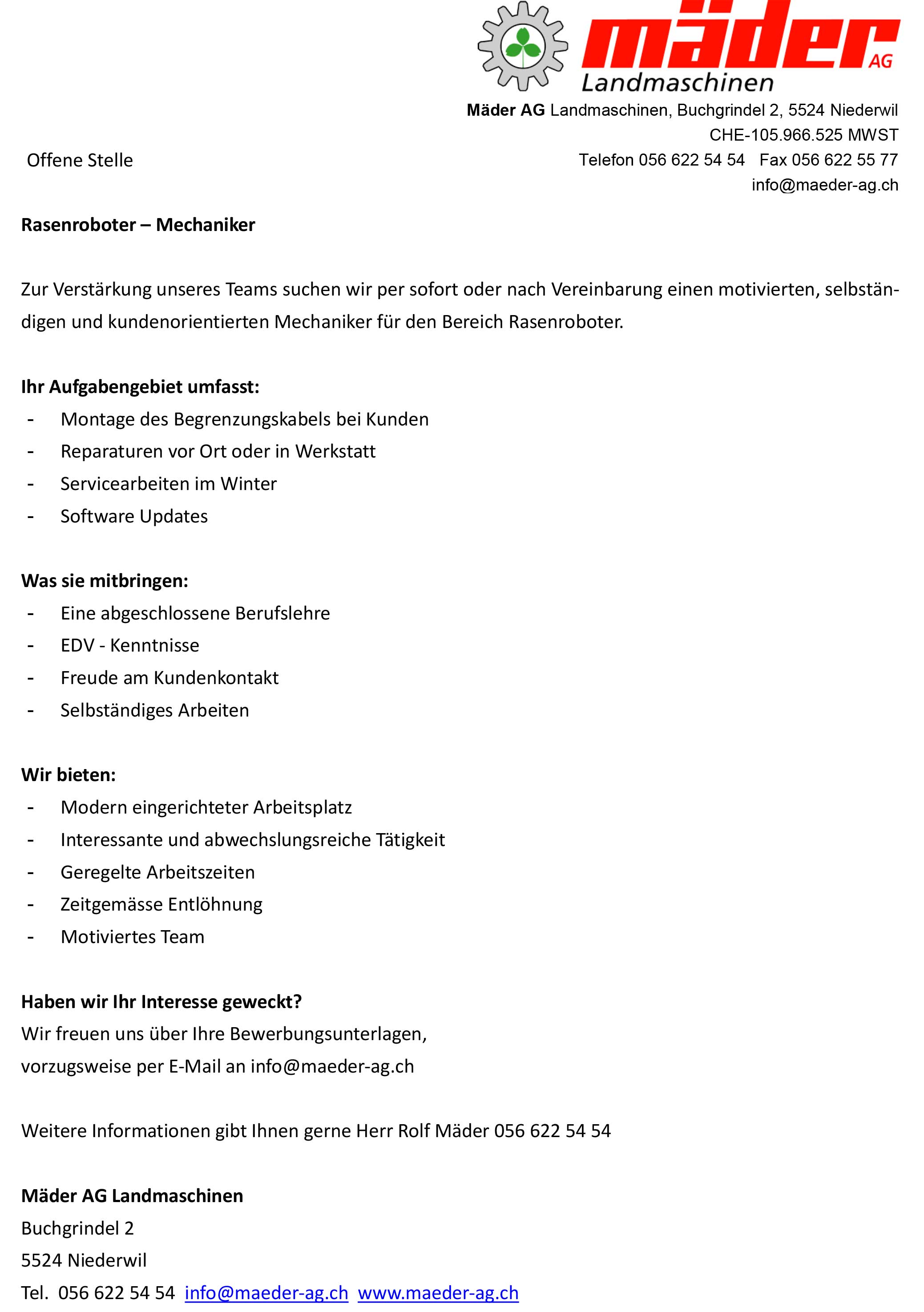 Sie befinden sich hier: Mäder AGAktuellesOffene Stellen